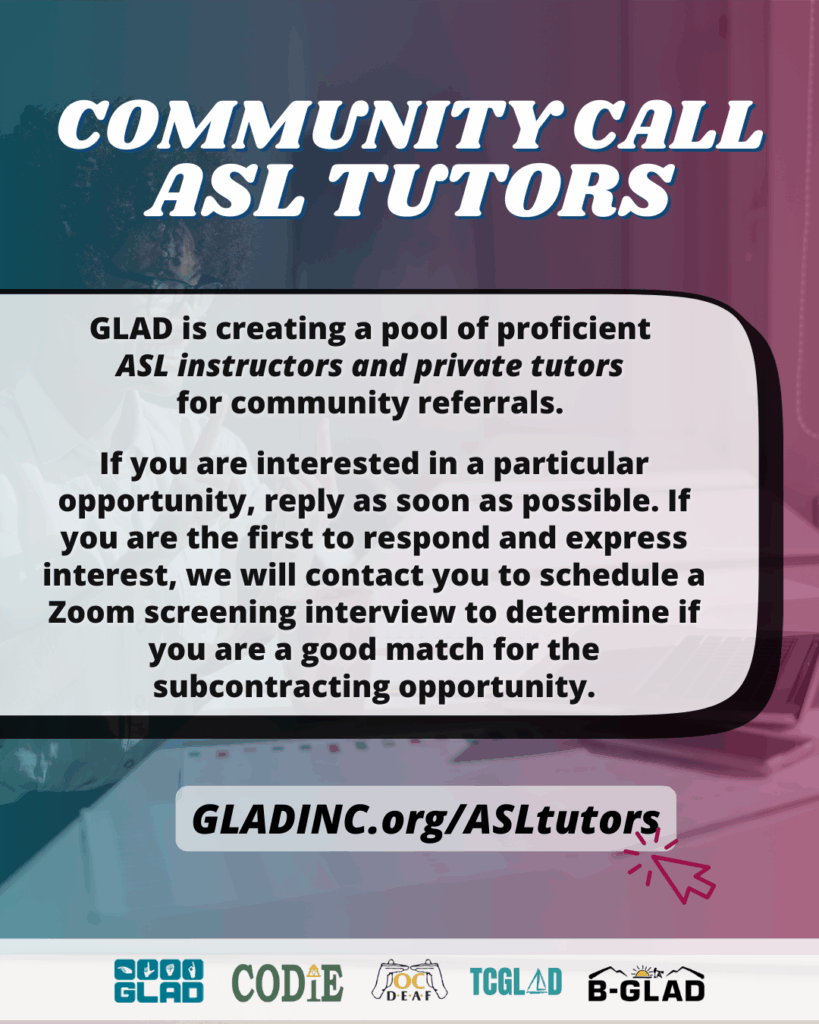 GLAD is creating a pool of proficient ASL instructors and private tutors for community referrals.